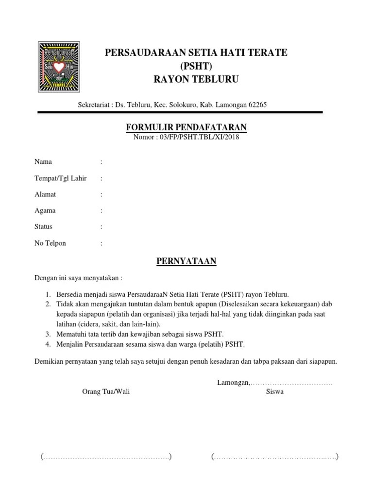 Seorang siswa yang tidak bisa masuk . Surat izin tidak masuk latihan psht karena sakit : Contoh surat izin tidak masuk latihan psht. Yang ingin membuat surat izin tidak masuk latihan rutin psht namun belum bisa membuatnya bisa belajar di video ini ya. Memberi izin kepada anak saya untuk mengikuti latihan organisasi pencak silat persaudaraan setia hati terate (psht).
