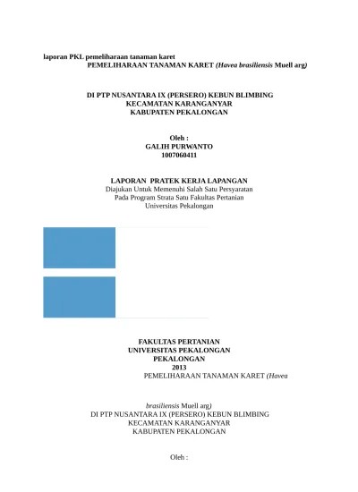 Contoh halaman sampul laporan pkl. Pengertian magang yaitu kegiatan yang harus . Tulisan "laporan kegiatan praktek kerja lapangan" diletakkan. (disertai lampiran jadwal pkl yang disahkan oleh pembimbing lapangan ). Praktik kerja lapangan (pkl) adalah kegiatan nyata di lapangan dengan.